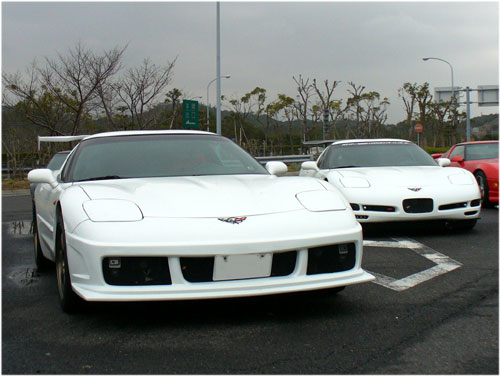 ホワイトC5&GTウィングコンビです。モデファイすると白の車は結構目立ちますね!