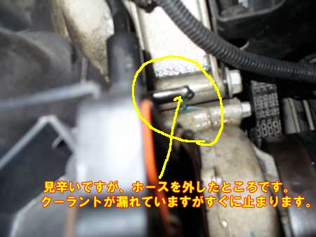 クーラントは少量ですが、漏れます。当たり前ですが、エンジンがちゃんと冷えてから行いましょう♪