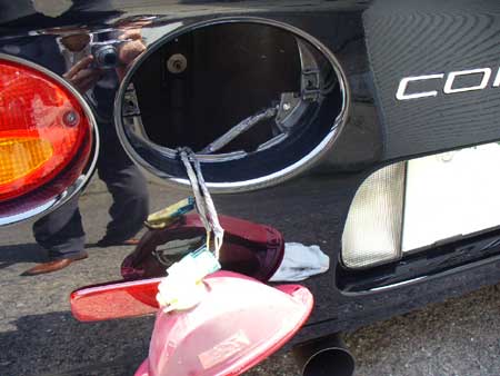 ノーマル状態のリアテールランプです。赤と黄色の組み合わせですね。これの内側だけをUSテールの赤のみのレンズに交換します。 |