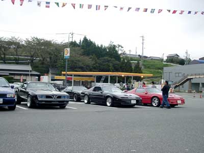 CROSS FLAGの方々と思います。カマロ、マスタング、トランザム色んなアメ車がいっぱいです。