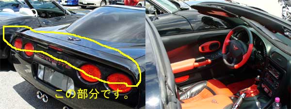 この車はCCJ関東支部のKatsuさんの愛車C5です。いつの間にかフロントがタイガーシャークになっていました。内装は前からツートンだったと思いますが、なんかハデになったような気が・・・