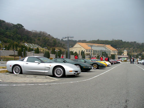 コルベット軍団!角度を変えて。手前のシルバーのC5は広島からのゲストさんです。ビデオを撮っておられたようですが、見れるのかなぁ・・・?