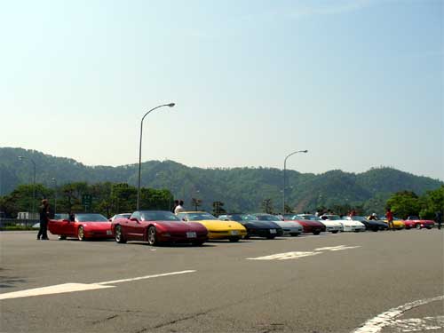 ここで三重支部、愛知支部のメンバーと合流です。この時点で30台近くいましたね。C1とカマロがゲスト参加できてました。