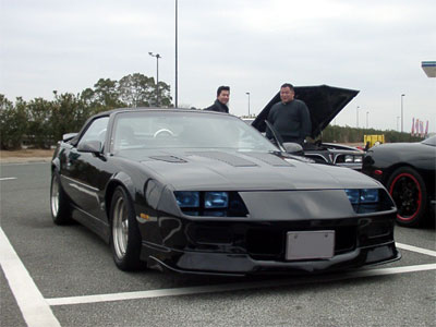 青い目のオープンカマロ!オーナーさんは黒い目でした(笑)元は赤色だったそうです。福岡はクロが流行り??こちらも年式は聞いていません。ファンベルトがリーチかかってました!!